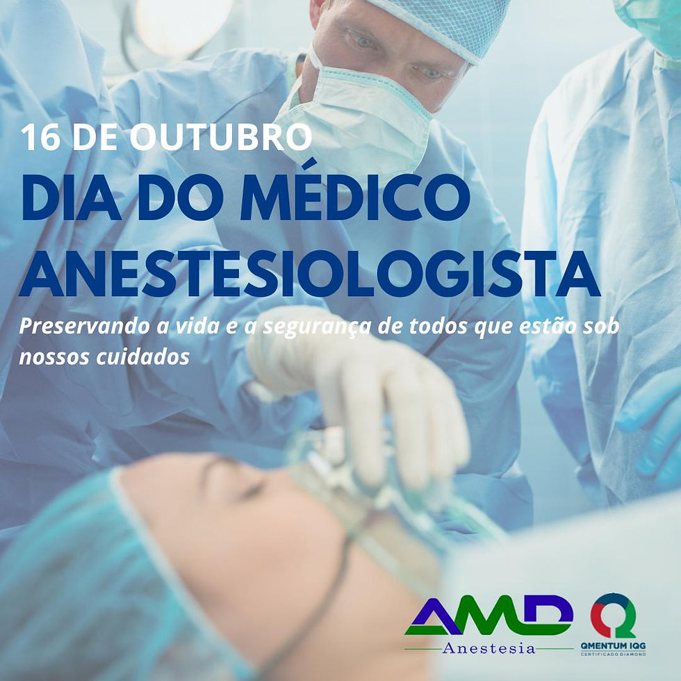 Dia Mundial da Anestesia16 de out. de 20201 min de leitura16 de outubro | Dia do Medico Anestesiologista - Nossos parabéns aos colegas de profissão!#amdanestesia #anestesia #diadoanestestesista #hospitalbp #saude #medicina #anestesista